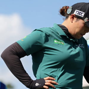 Watch: Ariya Jutanugarn nearly whiffed on 18 while leading the Chevron Championship