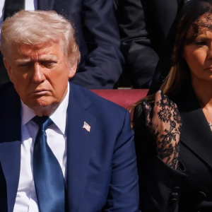 Melania Trump wears black veil to Pope Francis’ funeral as President Trump dons blue suit