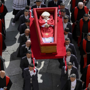 Pope Francis’ coffin has arrived at St. Mary Major Basilica, where he will be buried in a private ceremony later Saturday. It was met by about 40 migrants, prisoners, homeless…