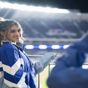 Apr 23, 2025; Kansas City, Missouri, USA; A fan takes photos during a rain delay prior to a game between the Colorado Rockies and the Kansas City Royals at Kauffman…