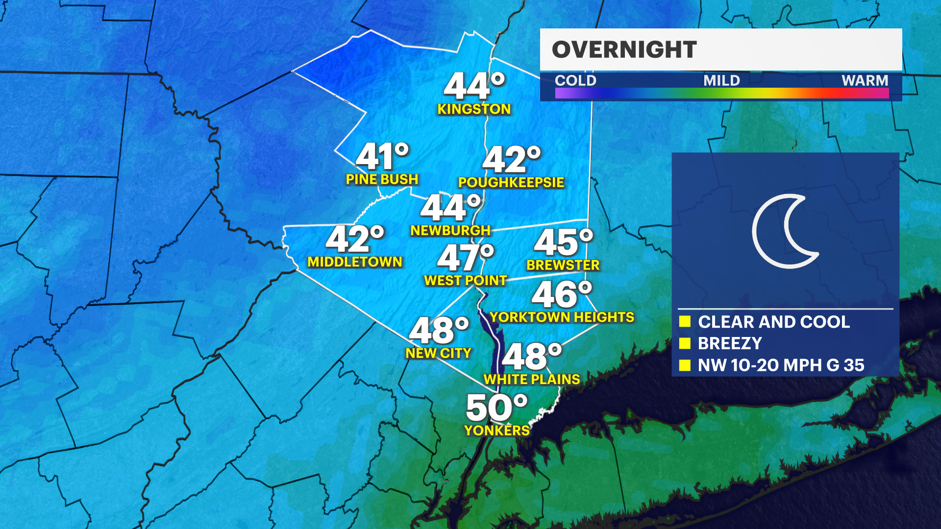 OVERNIGHT: Winds will remain breezy with gusts around 30 mph. These winds will weaken by sunrise with clear skies Monday morning. Monday looks gorgeous, a complimentary breeze, plenty of sunshine and temperatures warming into the low and middle 70s. A great day to be outdoors, so take advantage of it.