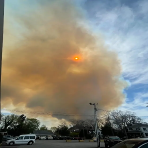Smoke plumes from the Jones Wildfire in Barnegat can be seen outside of the German Butcher in Forked River on April 22, 2025. (Patch Contributor) BARNEGAT, NJ — The forest…