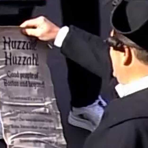 Paul Revere reenactor reads proclamation at Boston Marathon finish line