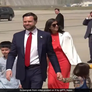 New Delhi: US Vice President JD Vance arrived in Delhi today with his wife, Usha, and three children. Mr Vance was welcomed by Union Minister Ashwini Vaishnaw at the Palam…