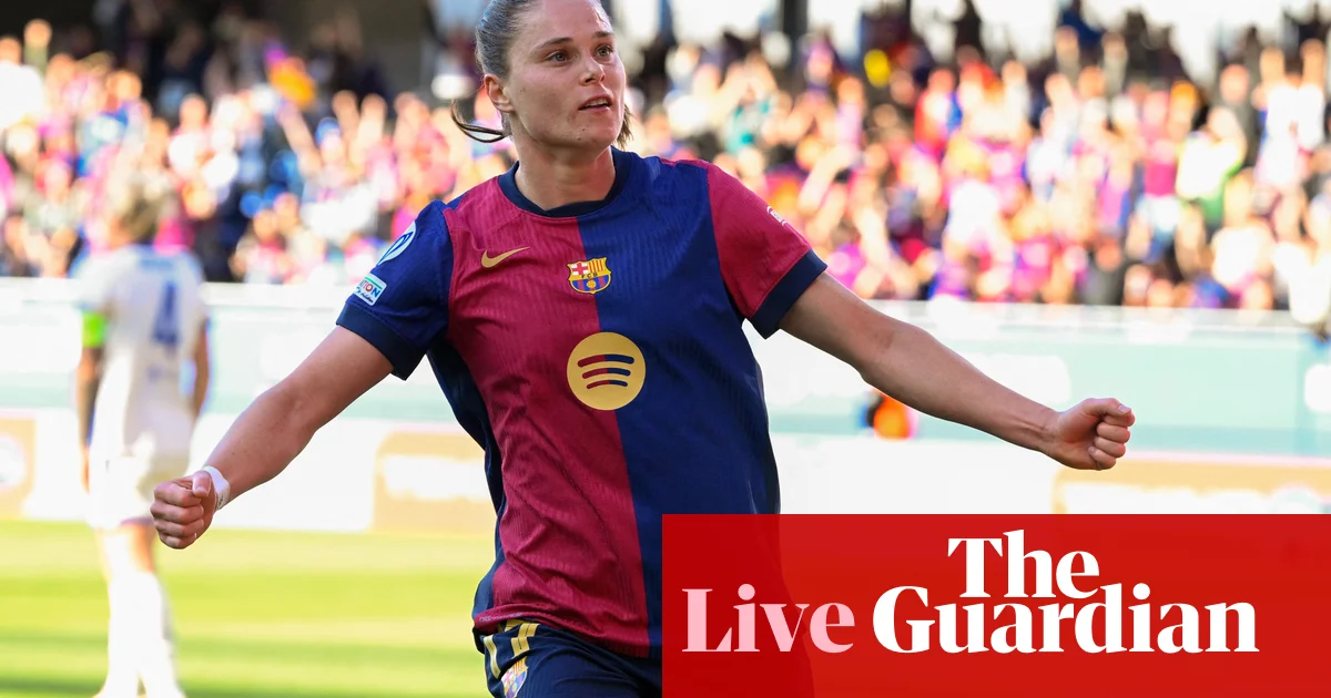Claudia Pina of Barcelona celebrates scoring her team’s second goal. Photograph: Álex Caparrós/UEFA/Getty Images