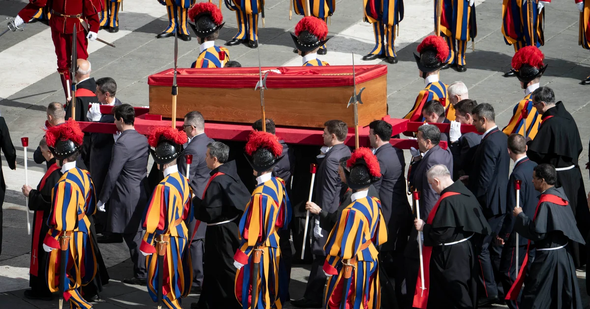 The simple wooden coffin carrying the pope was brought in a procession to St. Peter’s Basilica on Wednesday morning from his residence at Casa Santa Marta, where he died. For the next three days, he lay in state as crowds waited hours in line to file past and pay their respects.