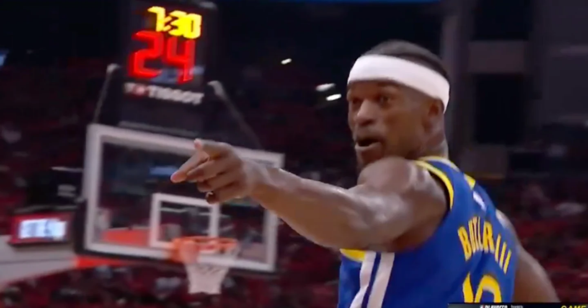 The Golden State Warriors forward refused to be denied as he got to the basket at will throughout the first half. And early into the second half, possibly in a bit of a heat check, Butler pulled up and drained a three, before turning to Reggie Miller at the broadcast desk and pointing straight at him.