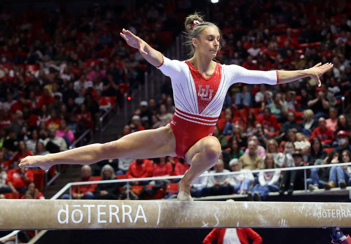 Utah’s Grace McCallum competes on the beam during a gymnastics meet against Arizona at the Huntsman Center in Salt Lake City on Friday, Feb. 7, 2025. Utah won. (Photo: Kristin Murphy, Deseret News)