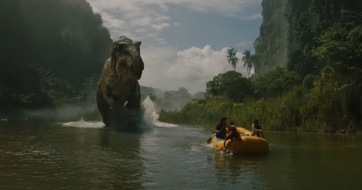The latest Jurassic World Rebirth trailer is full of snacks, including a raft of morsels frantically paddling down river from a casual T-rex.