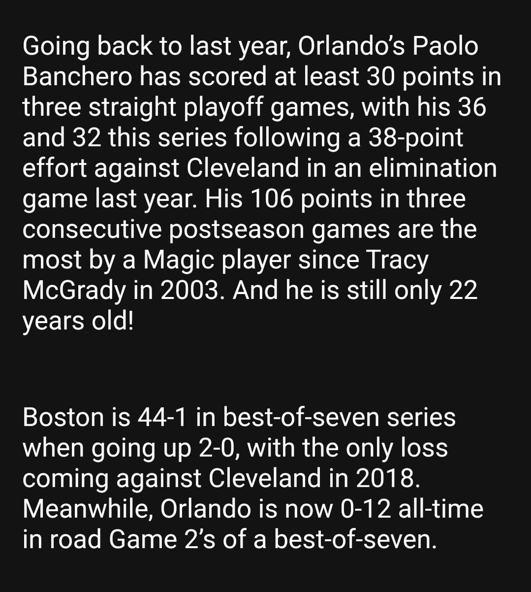 #Celtics end 2Q on a 19-4 run behind the sparkling play of Jayson Tatum and lead #Magic 59-49 at half. Tatum 21, Brown 11, White 10, Porzingis 7; Wagner 15, Banchero 15, Black 9. (Banchero & Black 3 fouls each). – 8:23 PM