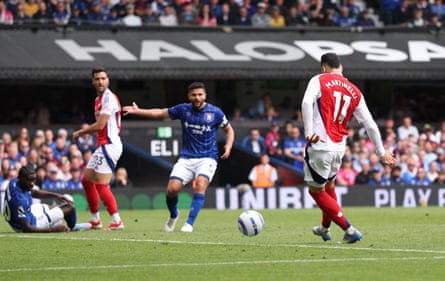 The first saw his cutback flick via Martin Ødegaard’s toe to Leandro Trossard who, loitering near the penalty spot, prodded past Alex Palmer while falling backwards. When Saka repeated the trick soon after, Mikel Merino’s faint back-heel sent the ball towards Gabriel Martinelli, who was able to tap into an empty net at the far post.