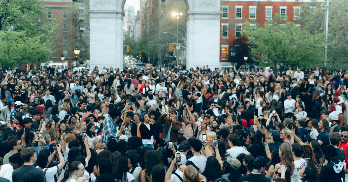 By 6 p.m., hundreds of young people had descended on Washington Square in Greenwich Village, creating a festive atmosphere, with Lorde songs blasting, some people smoking marijuana and several climbing trees for a better view of a concert that did not happen.