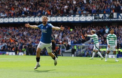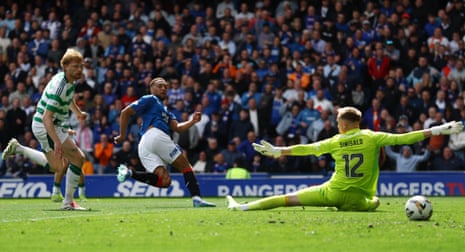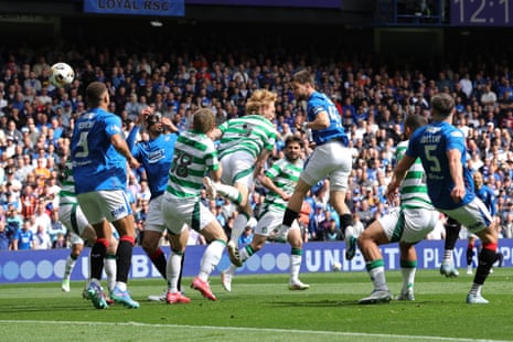 7 min: Rangers are playing quite a high line and Idah has threatened on a few occasions to break the offside trap. Another probing run forces a corner. Here come the Celtic cavalry from the back … and only an excellent defensive header from Balogan at the near post clears the danger!