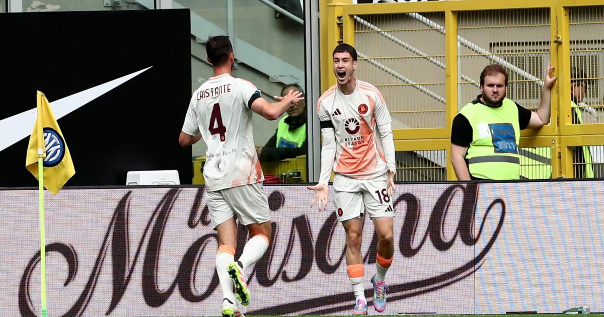 A San Siro è Matias Soulé a sbloccare il risultato tra Inter e Roma, match della 34ª giornata di Serie A. L’argentino porta avanti i giallorossi su un’azione perfetta al 22′ del primo tempo: passa il pallone indietro a Pellegrini, con il tiro del capitano che viene ribattuto da Sommer. Il rimpallo (che sembra venga anche sfiorato da Shomurodov) finisce di nuovo a Soulé che di destro (nonostante sia mancino), batte il portiere nerazzurro e gonfia la rete. Un gol bellissimo che fa impazzire di gioia i tifosi giallorossi sui social e non solo, purtroppo quelli residenti nel Lazio costretti a seguire in tv la partita per il divieto di trasferta inflitto dopo gli scontri durante il derby della Capitale.