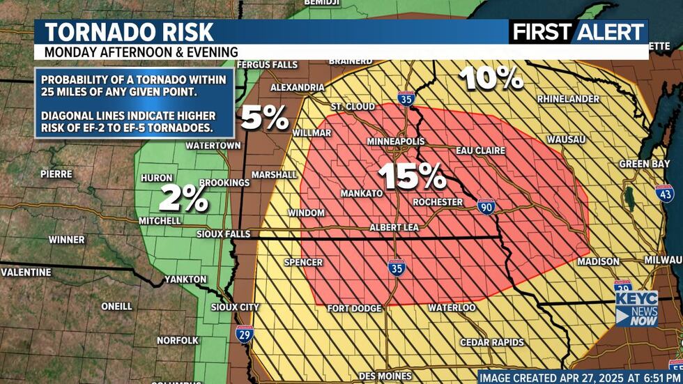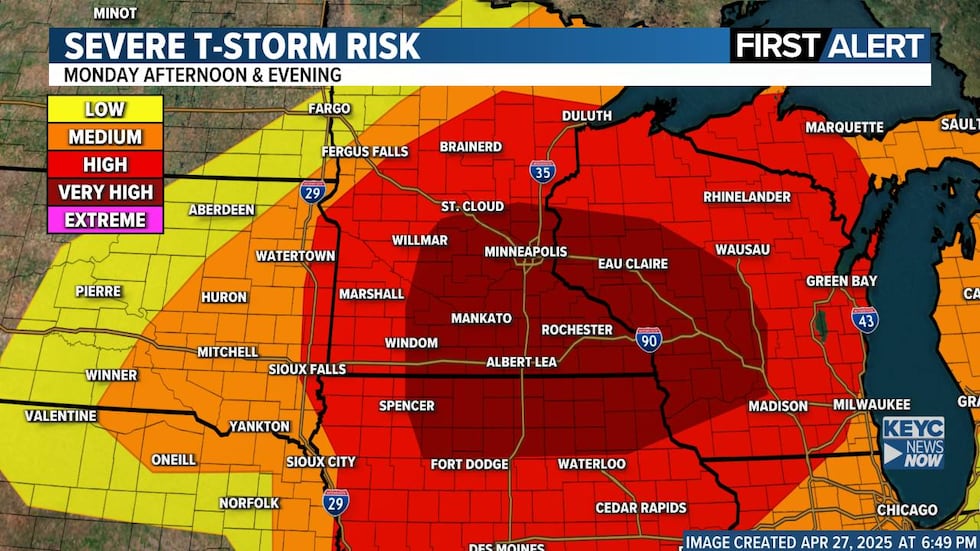 - It’s impossible to pinpoint exactly where the worst storms will form. That’s why everyone in southern Minnesota, northern Iowa, eastern South Dakota, and western Wisconsin needs to stay weather-aware Monday.