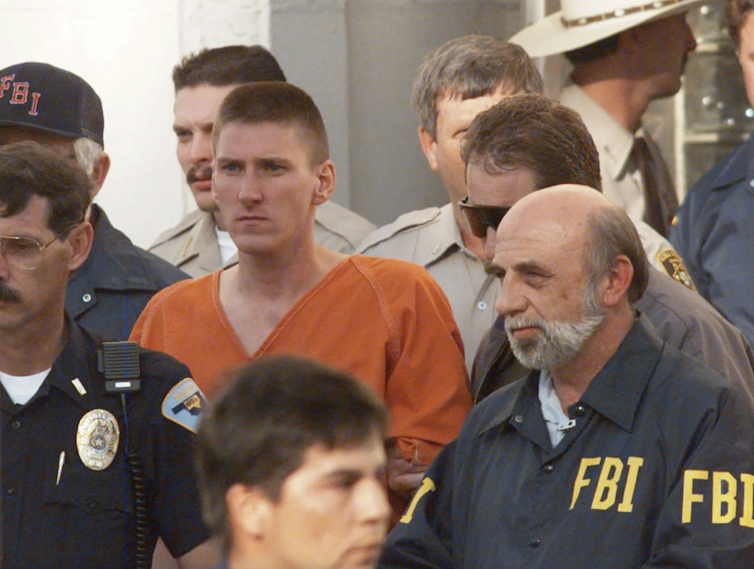 Indeed, McVeigh shared his plans for the bombing with others. Like Terry Nichols and his brother James, McVeigh was connected to the Michigan Militia, an armed paramilitary group that advocates for armed defence against federal overreach and perceived incursions on freedom.